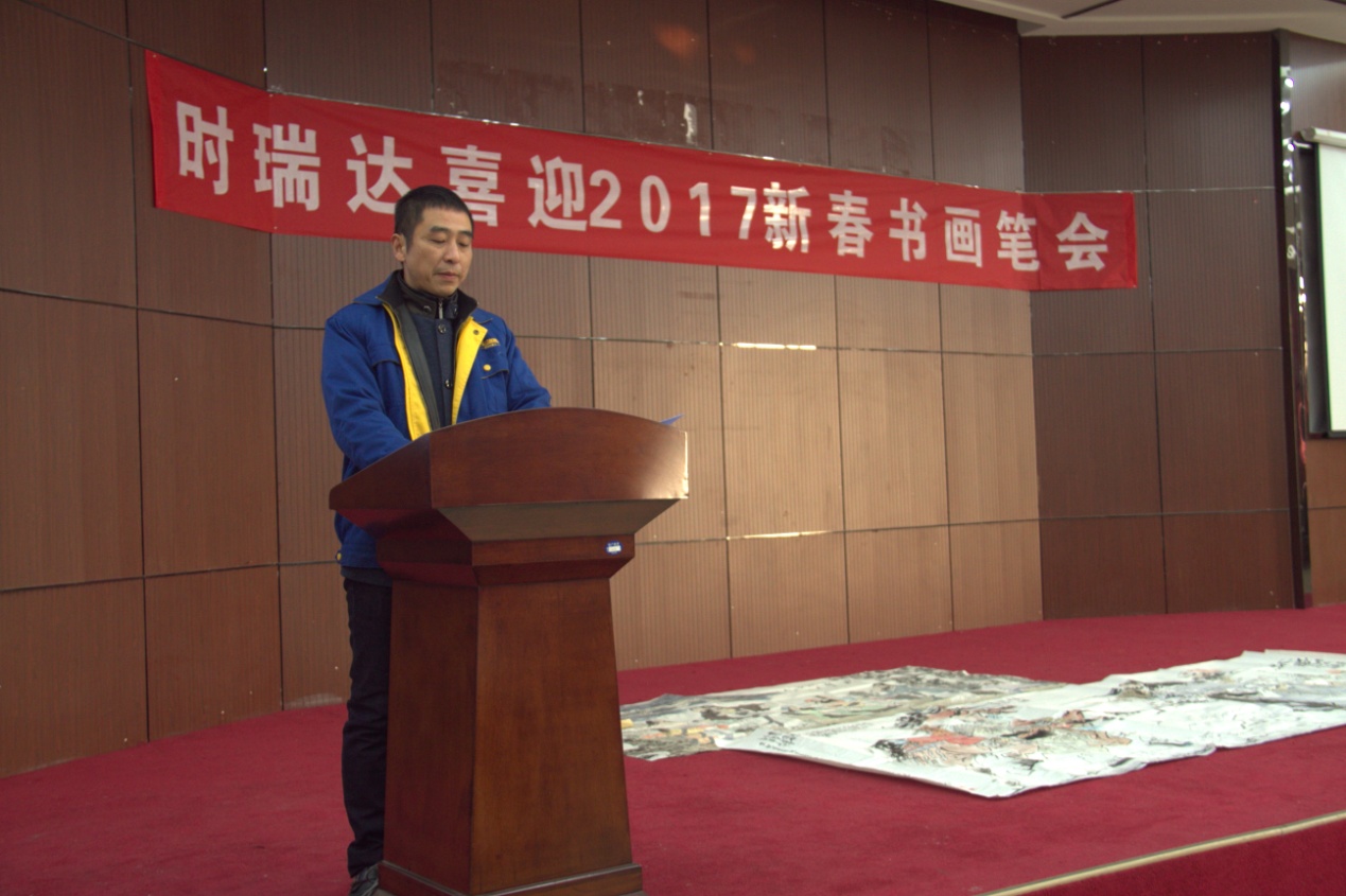 09时30分,公司领导葛国强先生主持召开了此次书画会,对五位书画名家的到来表示热烈的欢迎及诚挚的谢意,预祝此次新春书画笔会圆满成功并送上了新春的祝福。