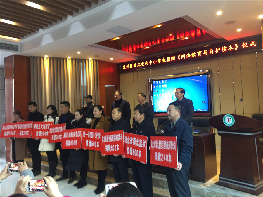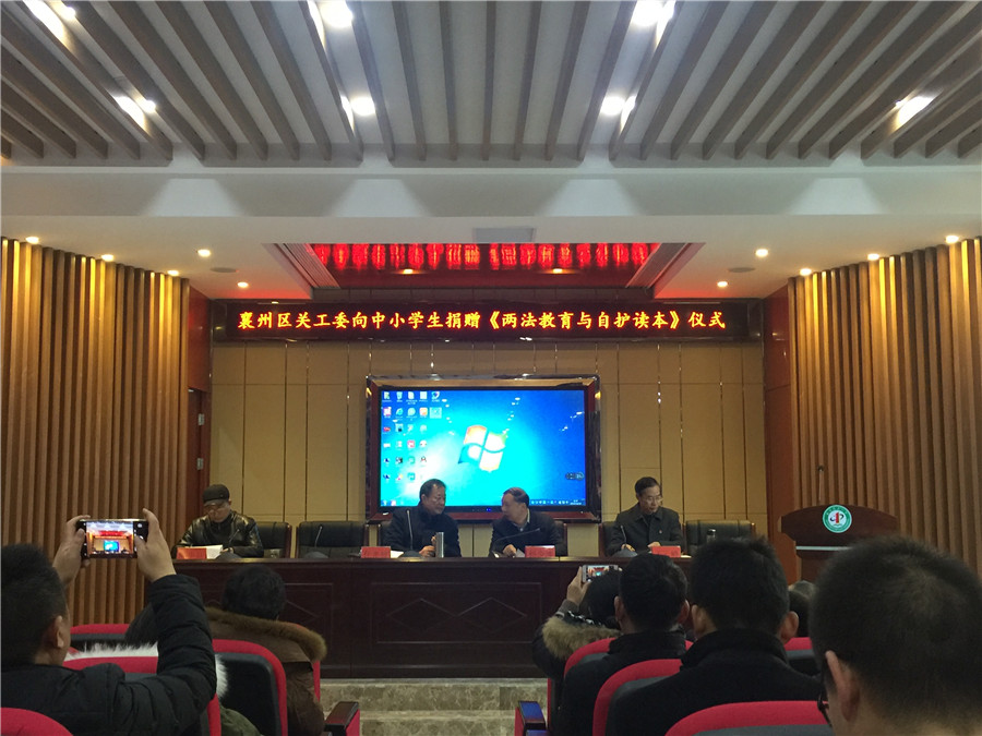 12月19日,襄州区关心下一代工作委员会在张湾中心小学举行了《两法教育与自读护本》的图书捐赠仪式。本次活动是响应我市在中小学生中普及安全预防知识,加强安全知识教育,提高未成人的自我保护意识和技能的爱心捐书活动,旨在通过发动社会力量向全区中小学生捐赠《两法教育与自读护本》科普图书,在全区中小学生中普及安全预防与自救知识,提高孩子们灾害预防与自救,互救技能,增强孩子们的自我防护意识。