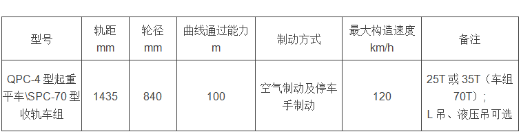 适用于线路施工维修时运载钢轨、轨枕等线路配件及其他材料。